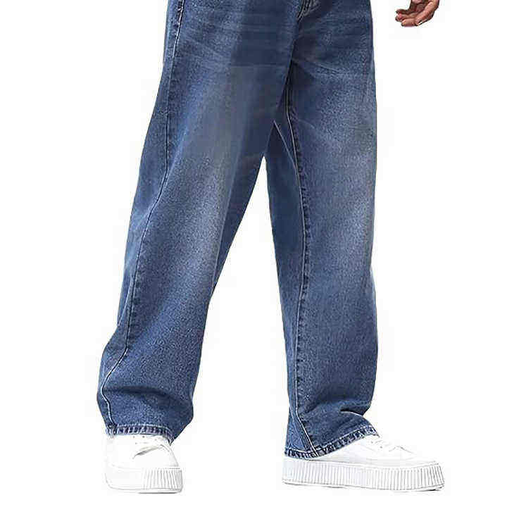Baggy en jean décontracté classique pour hommes, pantalon ample à jambes larges avec logo personnalisé