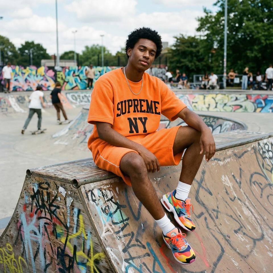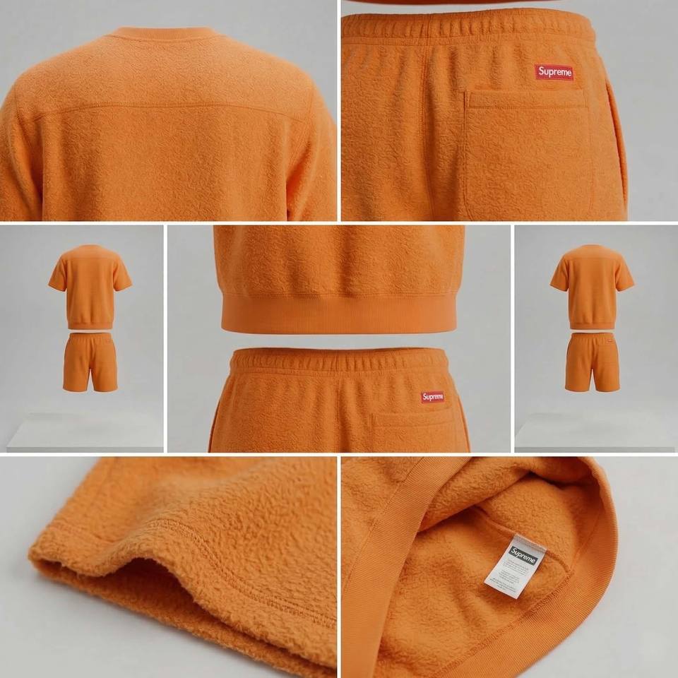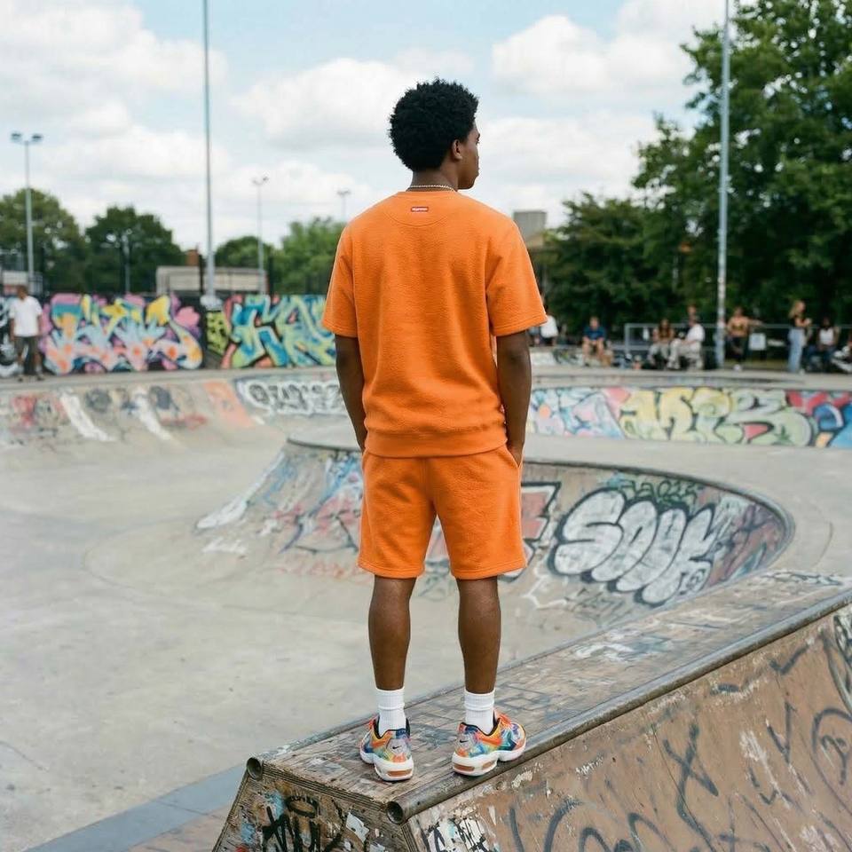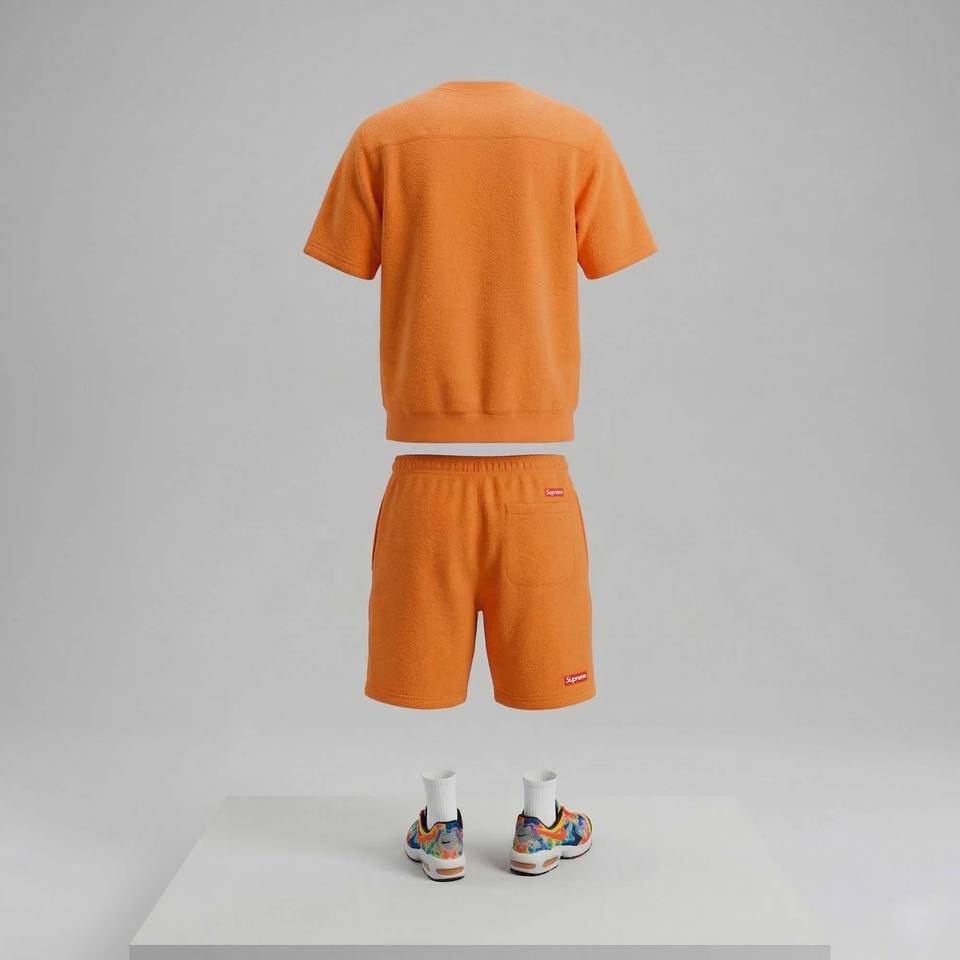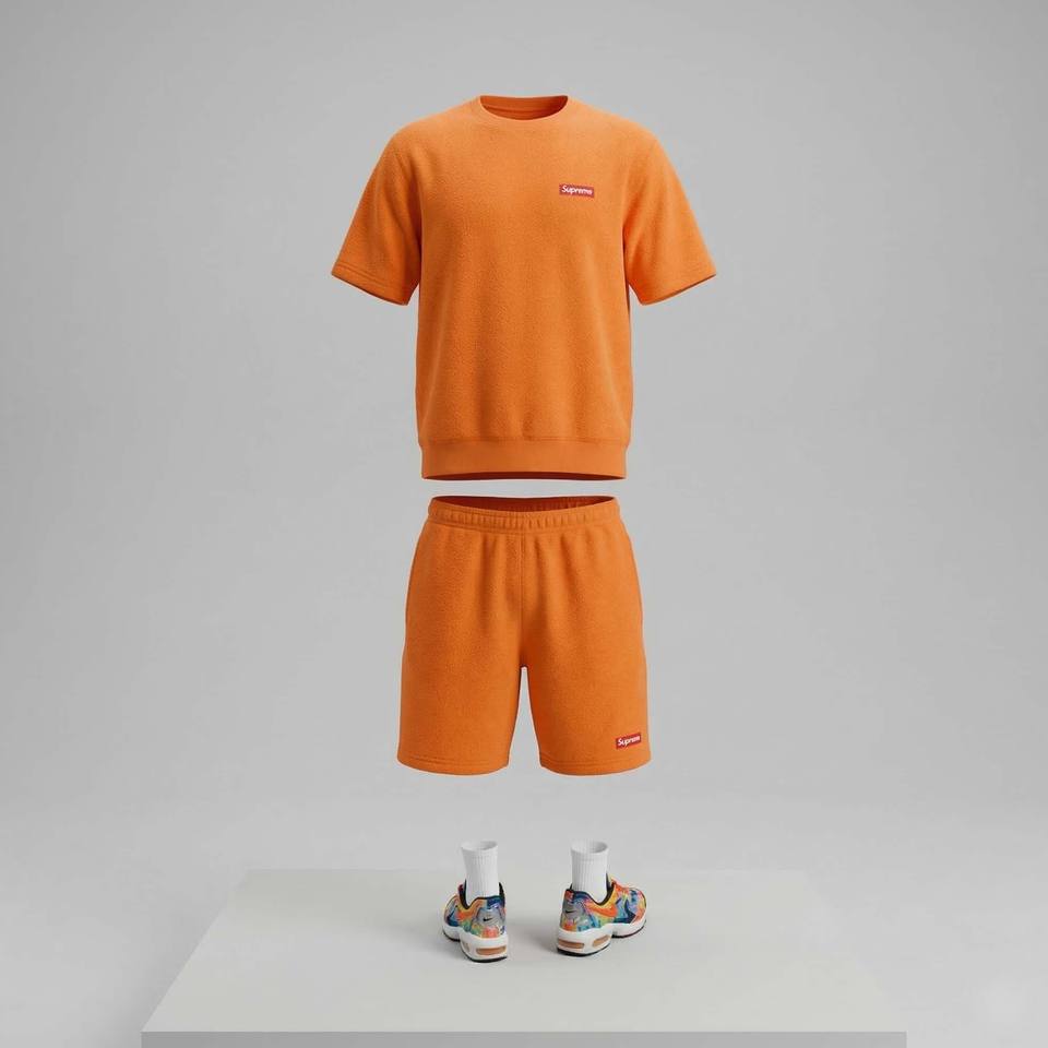 Ensemble deux pièces homme personnalisé avec logo, en molleton respirant à manches courtes, coupe lourde, orange, style streetwear, short et t-shirt de survêtement