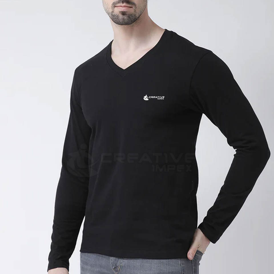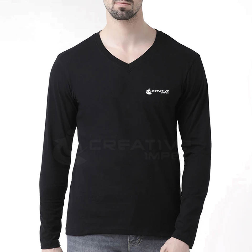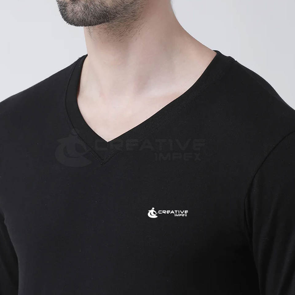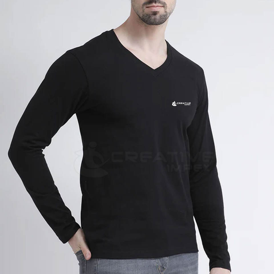 Logo personnalisé T-shirt à manches longues et col en V pour hommes respirant 100% coton pour une tenue quotidienne et décontractée motif solide