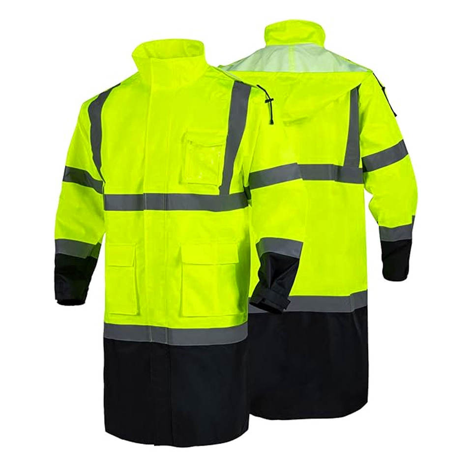 Custom Logo Men's Long Polyester Rain Coat with Fluorescent Feature Waterproof Soccer Rain Suit