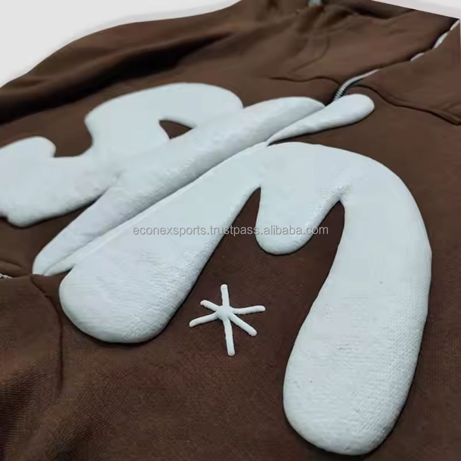 Sweat-shirts à capuche surdimensionnés pour hommes avec logo personnalisé 500 Gsm coton fermeture éclair complète pour impression bouffante 100% sweat à capuche pull Zipup lourd