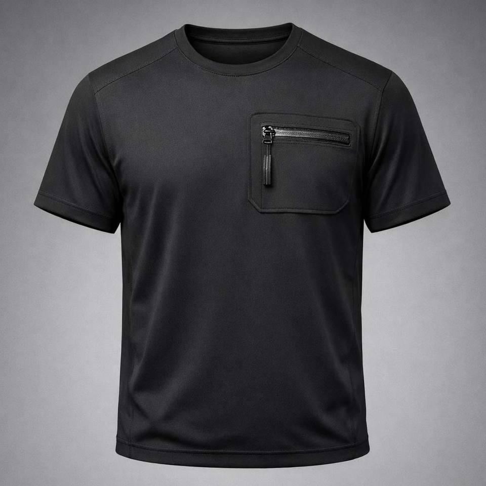 T-shirt de performance pour homme avec logo personnalisé, séchage rapide, respirant, pour la gym et l'entraînement, avec poche zippée