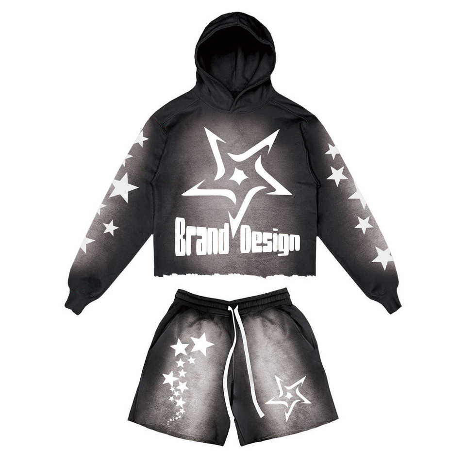 Ensembles personnalisés pour hommes avec logo, effet délavé soleil, ourlet brut, deux pièces, sweat-shirt et short, ensemble de jogging délavé à l'acide, ensembles courts sur mesure pour hommes