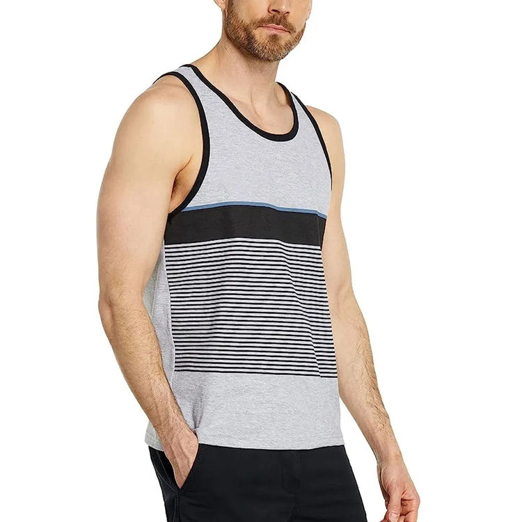 Débardeur Homme Personnalisé avec Logo, Gilet d'Été Décontracté en Coton à Rayures Imprimées, Vêtement de Sport Respirant Coupe Ajustée, Haut de Sport Tendance