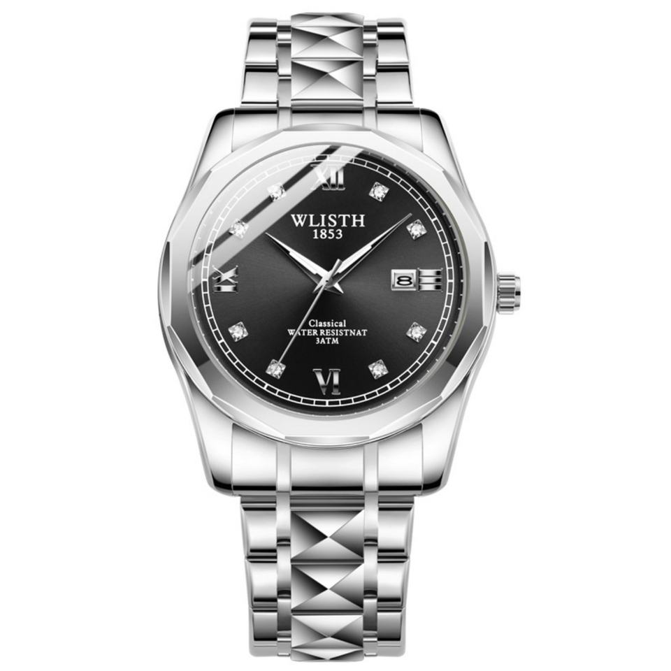 Montres à quartz en acier inoxydable pour hommes avec logo personnalisé, design décontracté et professionnel, cadran en verre, affichage par aiguille, boîtier en alliage