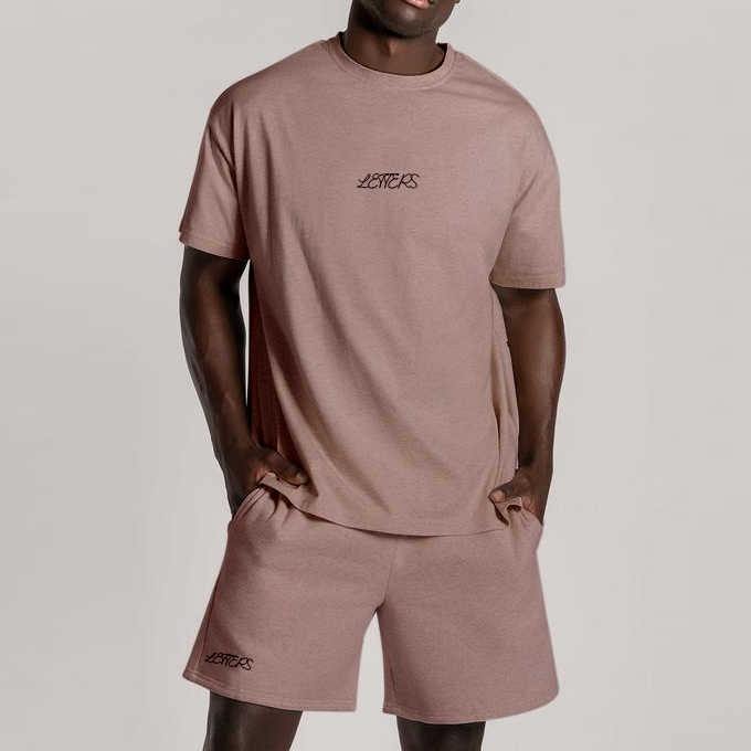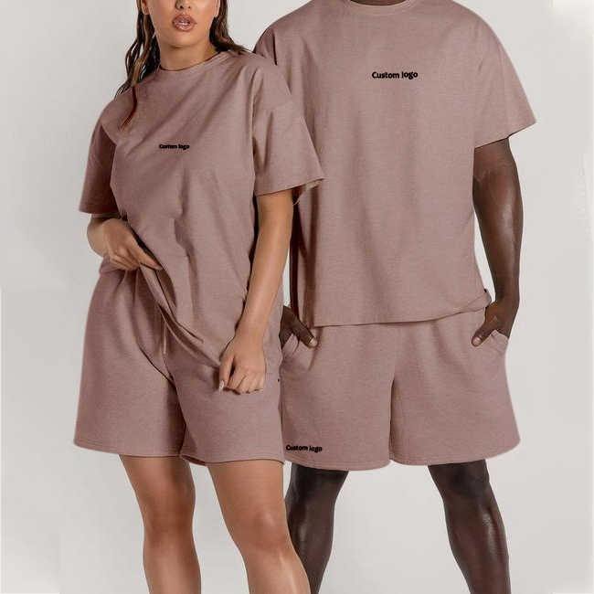 Ensemble T-shirt et short surdimensionné en coton biologique éponge pour homme avec logo personnalisé, grande taille, respirant, décontracté, sport, uni