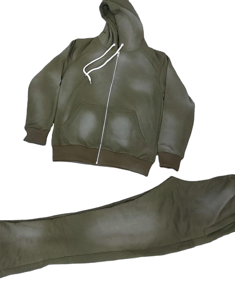 Ensemble de survêtement homme personnalisé avec logo, effet délavé, fermeture éclair, pantalon de jogging ample en molleton 100% coton, idéal pour l'hiver
