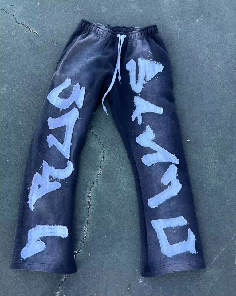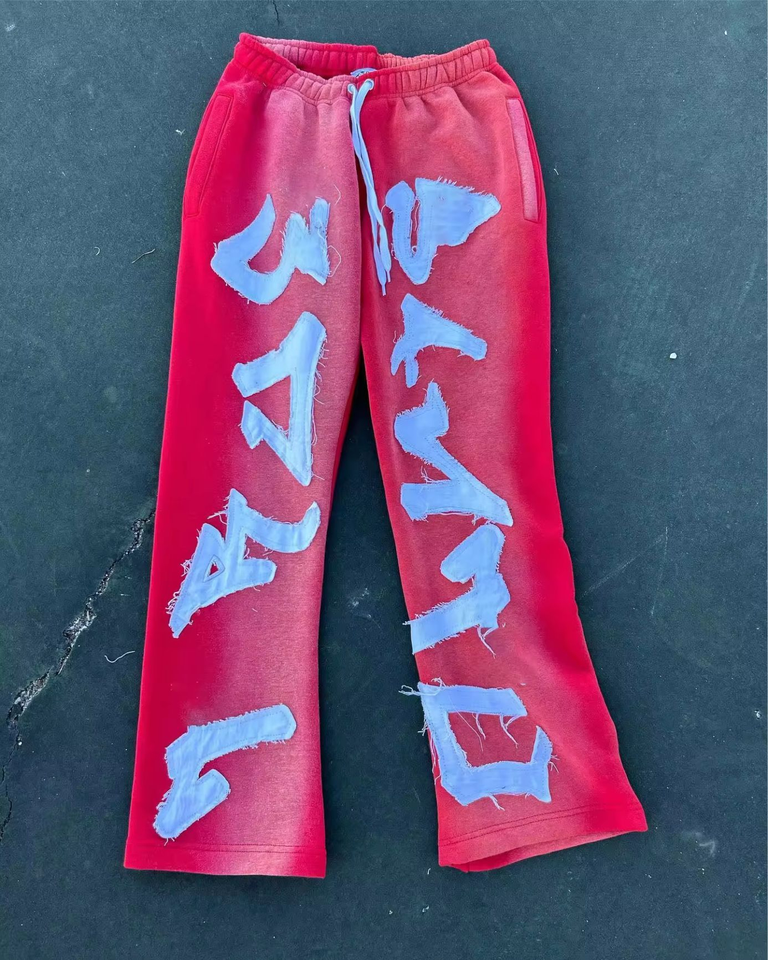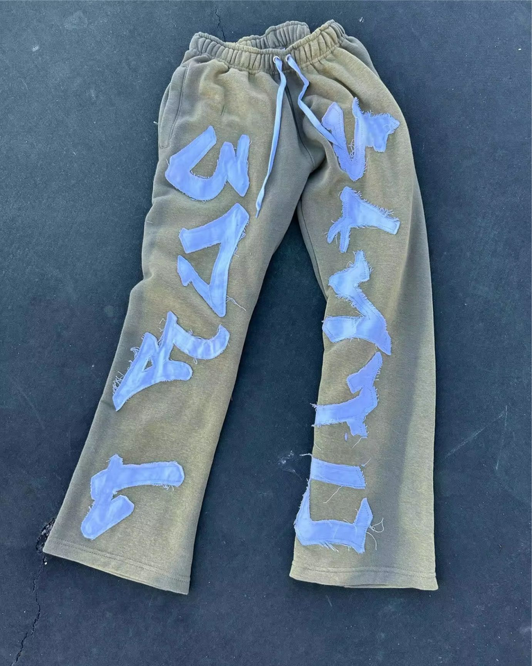 Logo personnalisé Pantalon de survêtement pour hommes taille haute en éponge française broderie de détresse droite coupe ample style décontracté avec devant plat