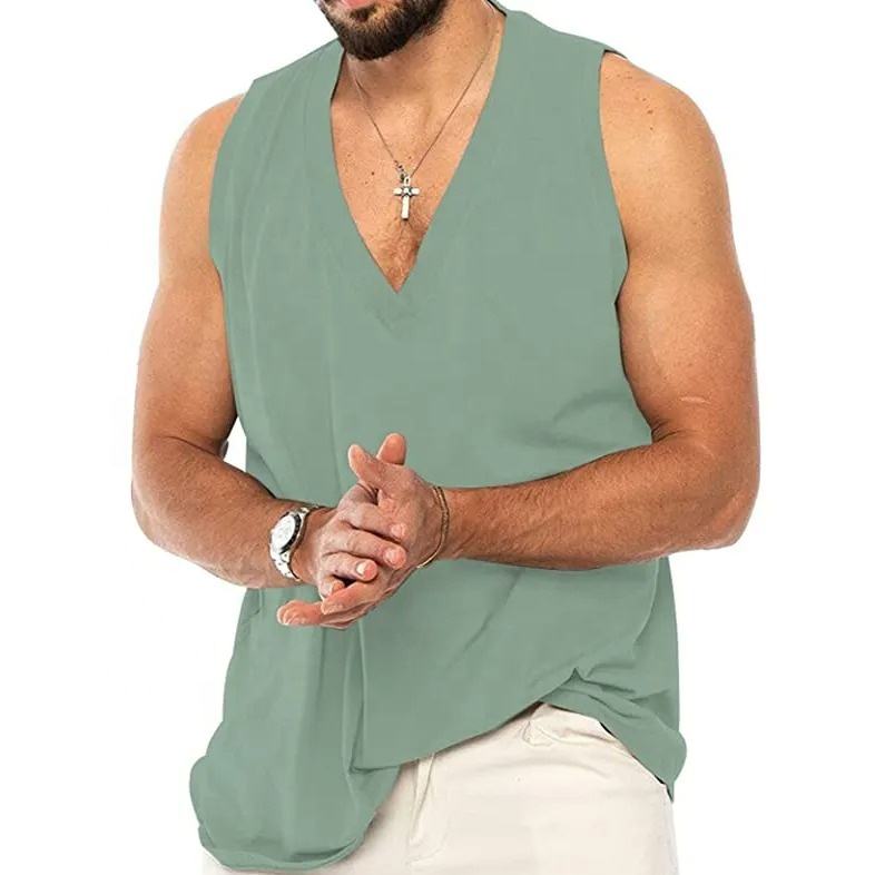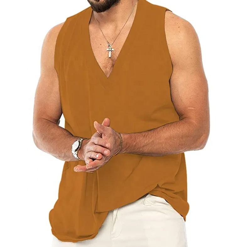Débardeurs sans manches à col en V pour hommes, Logo personnalisé, chemises de Gym, d'entraînement, de plage