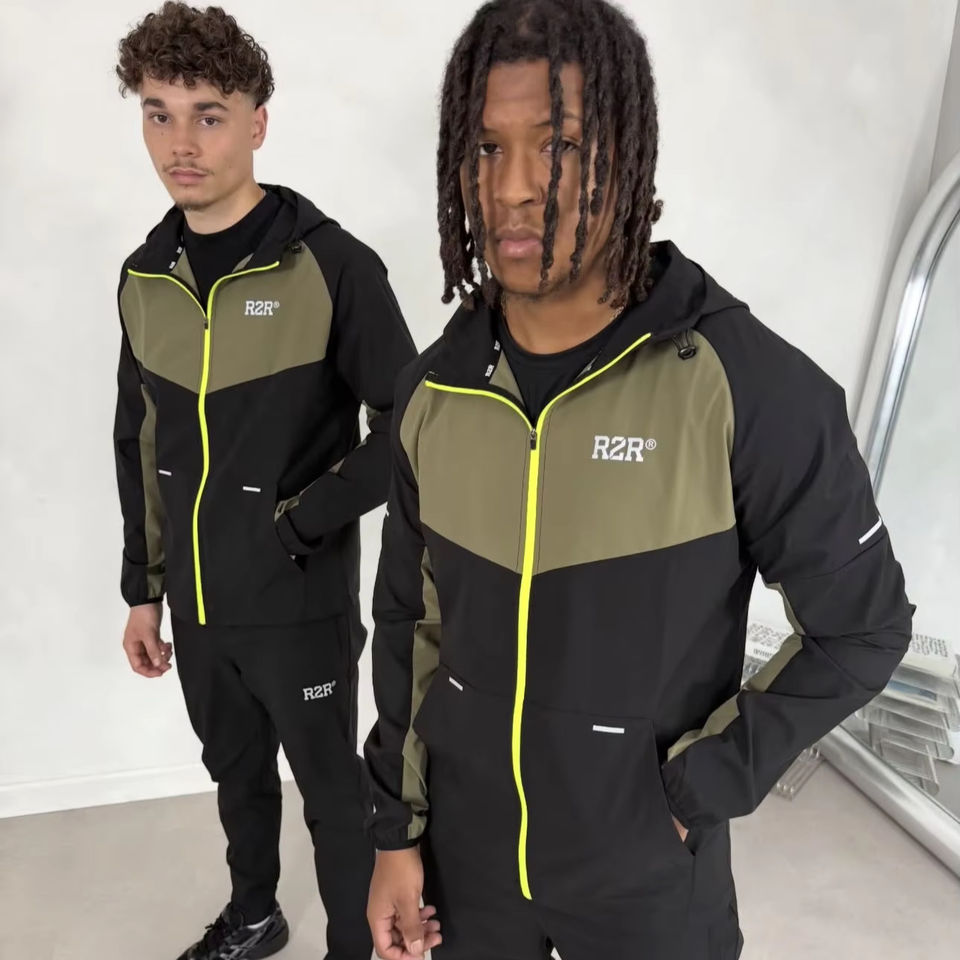 Ensemble de survêtement technique en molleton pour homme avec logo personnalisé, veste coupe-vent à capuche et pantalon de jogging réfléchissant