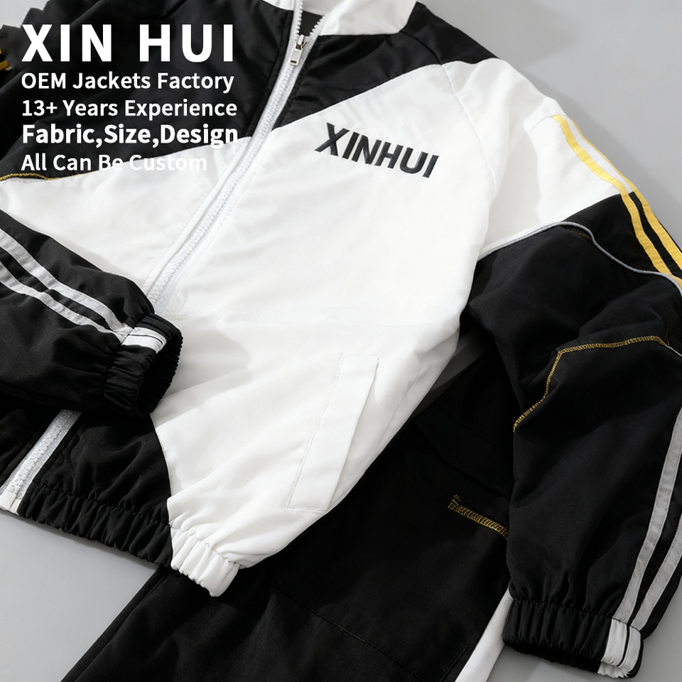 Ensemble de survêtement d'hiver unisexe personnalisé avec logo, deux pièces, streetwear, veste coupe-vent color block, pantalon de jogging, cuir/coton, entraînement