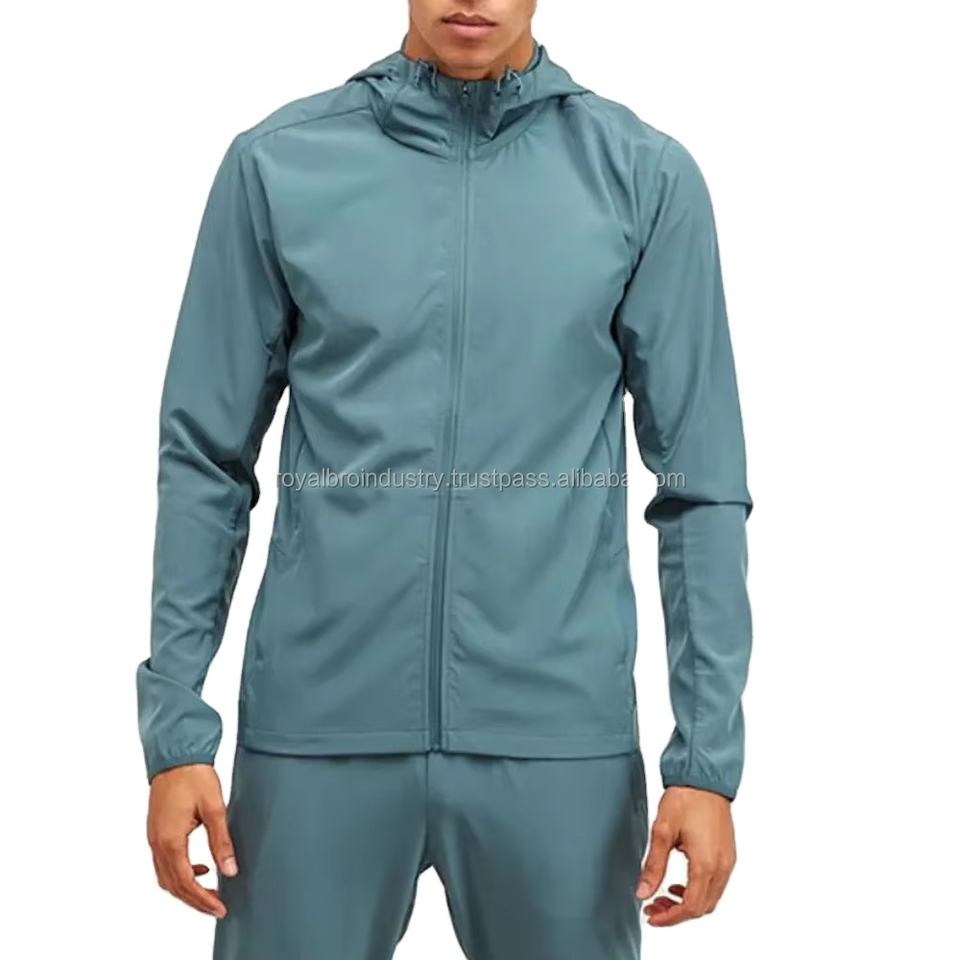 Logo personnalisé survêtement pour hommes coupe-vent en polyester et nylon ensemble de veste de sport survêtement coupe-vent zippé pour hommes