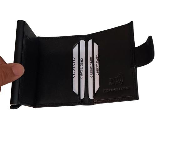 Portefeuille à trois volets en cuir pleine fleur pour hommes, logo personnalisé, mince et minimaliste, porte-cartes anti-RFID
