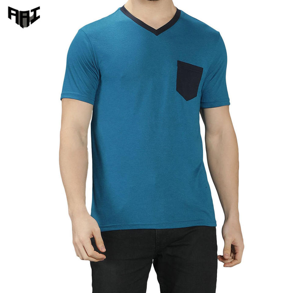 T-shirt décontracté à col en V pour homme, 100 % coton, coupe ample, streetwear, manches courtes, couleur contrastante, avec logo personnalisé – Fournisseur OEM ODM