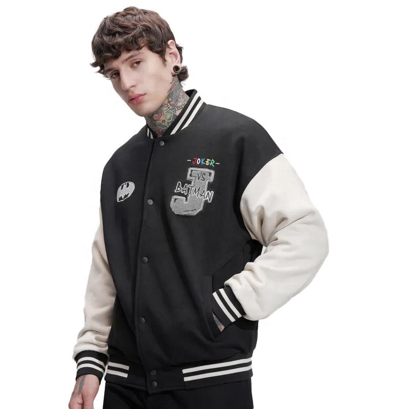 Veste universitaire pour homme avec logo personnalisé, manches régulières, noire, 100% laine, respirante, coupe-vent, grande taille, décontractée, hiver, service OEM