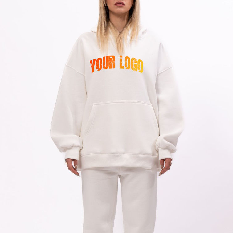 Ensemble de survêtement d'hiver pour homme avec logo personnalisé, sweat à capuche et pantalon de jogging, coupe oversize, épaules tombantes, 2 pièces, streetwear, grandes tailles, 100% coton