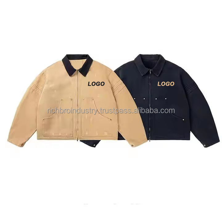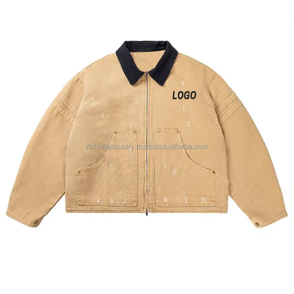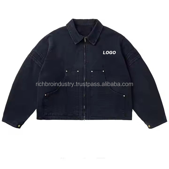 Veste de travail pour homme avec logo personnalisé, hiver, bouton unique, 100% coton denim, imperméable, respirante, vintage, coupe ample sur le devant