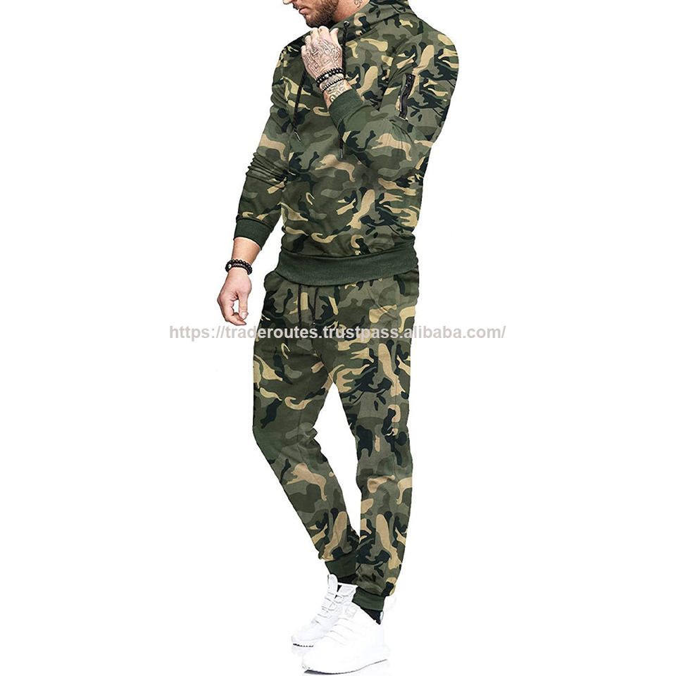 Combinaison de sport 2 pièces pour homme, Logo personnalisé, coupe Slim, camouflage, survêtement en Polyester, pour la course à pied