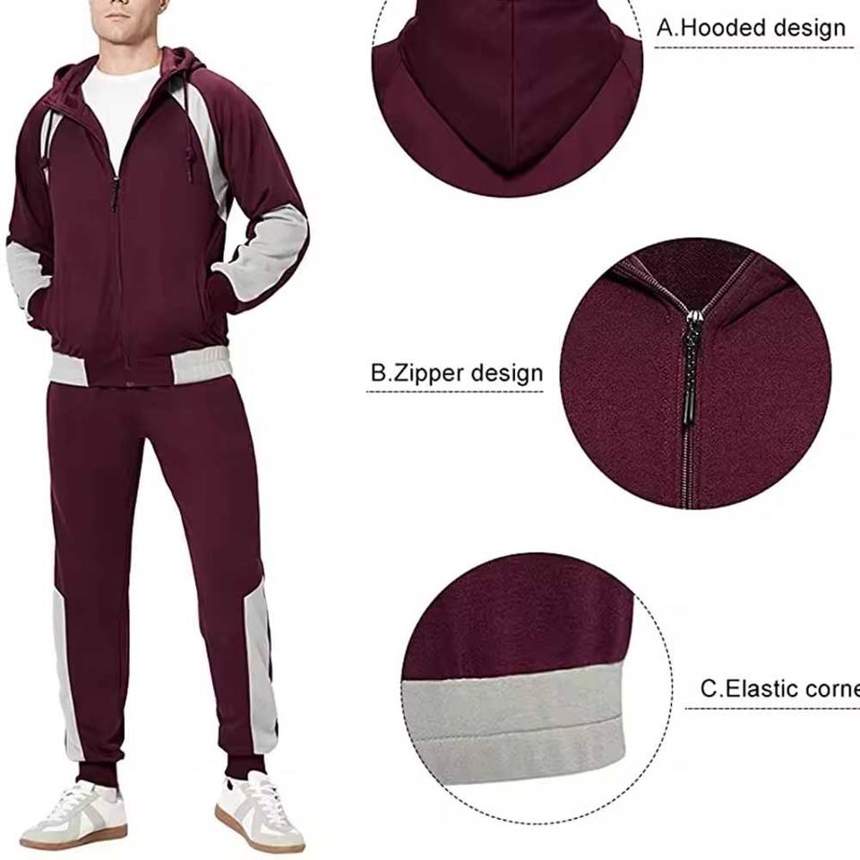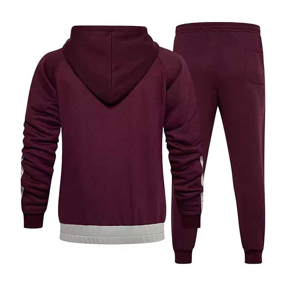 Survêtement personnalisé pour homme, couleur bordeaux | Ensemble sweat à capuche et jogging bicolore à fermeture éclair intégrale | Ensemble de jogging streetwear patchwork 100% coton réversible
