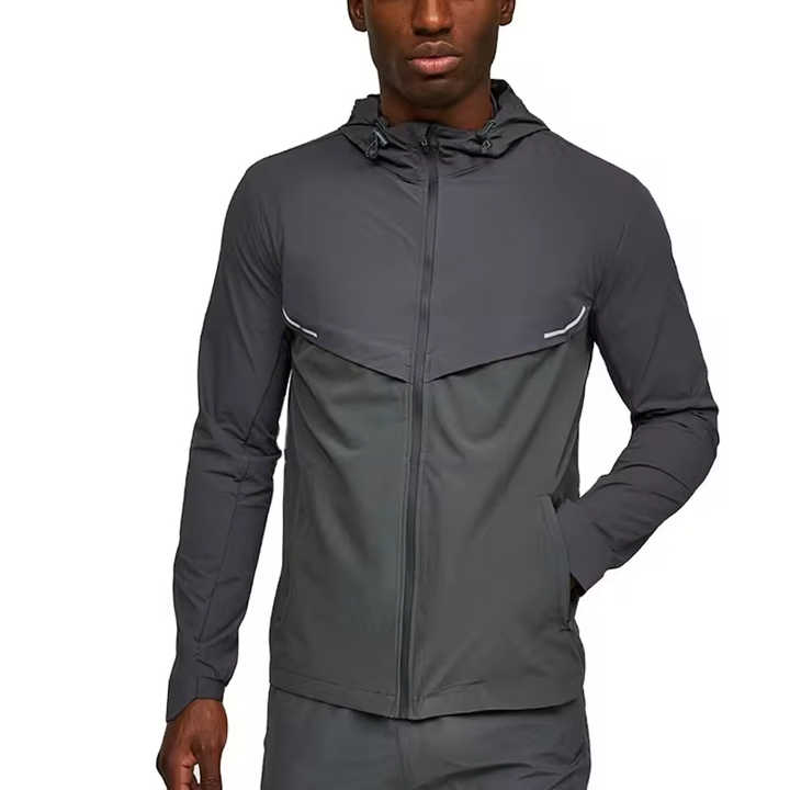 Veste coupe-vent imperméable pour homme avec logo personnalisé, taille plus, veste de sport d'extérieur à capuche, col montant, en toile de coton