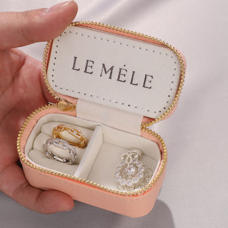 Boîte de rangement portable en cuir avec fermeture éclair pour bijoux, mini-étui de voyage pour boucles d'oreilles, colliers et bagues, personnalisable avec logo