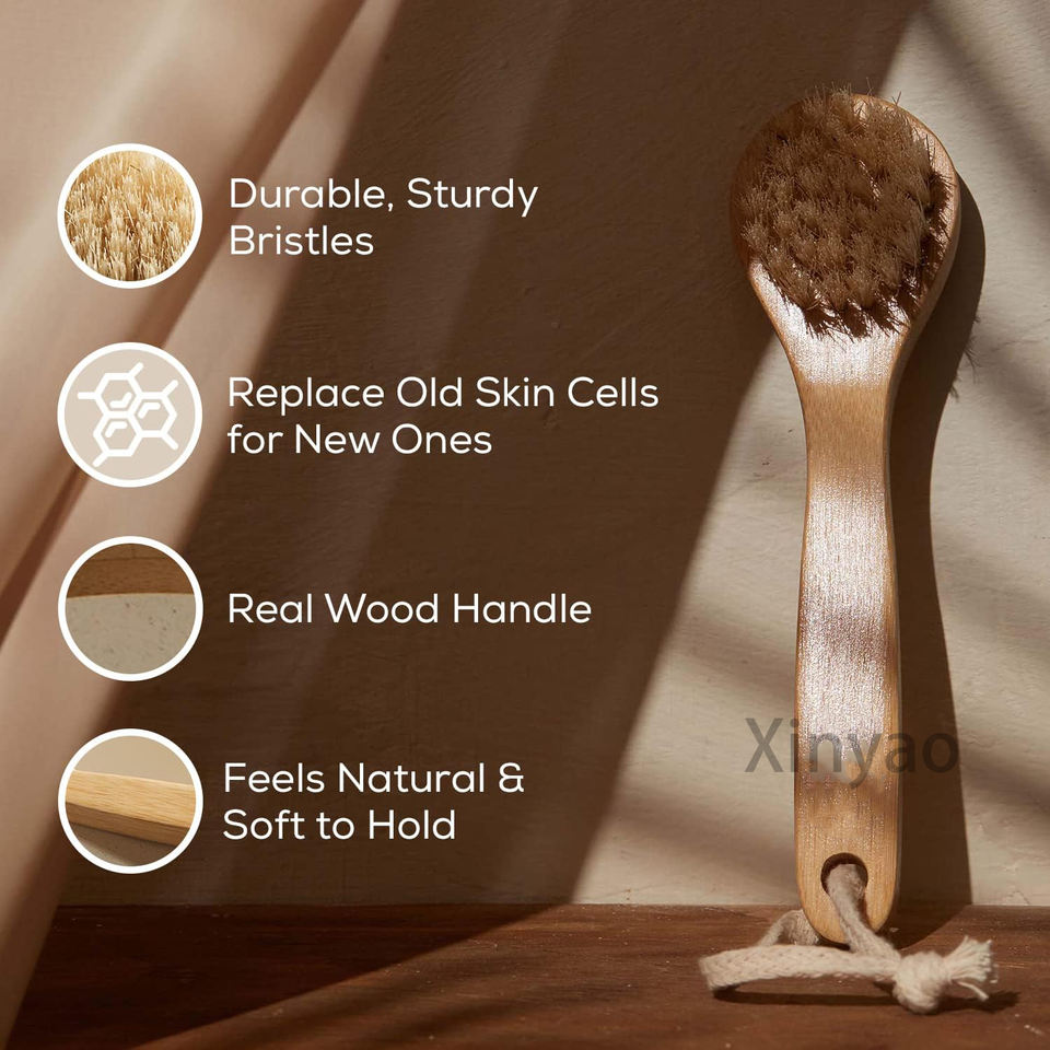 Brosse sèche miniature personnalisée avec logo, poils naturels, exfoliante, pour le nettoyage du visage, zones sensibles, cou, poitrine, ongles