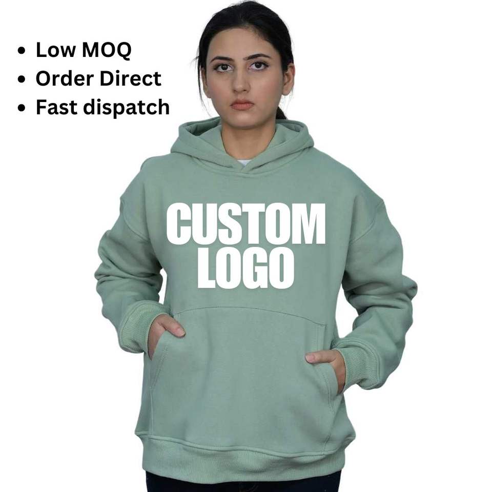 Custom Logo Mint Green Women Cotton Oversized Hoodie 400 Gsm Low MOQ Competitive Price RTS Ready to Ship Screen Print Embroidery