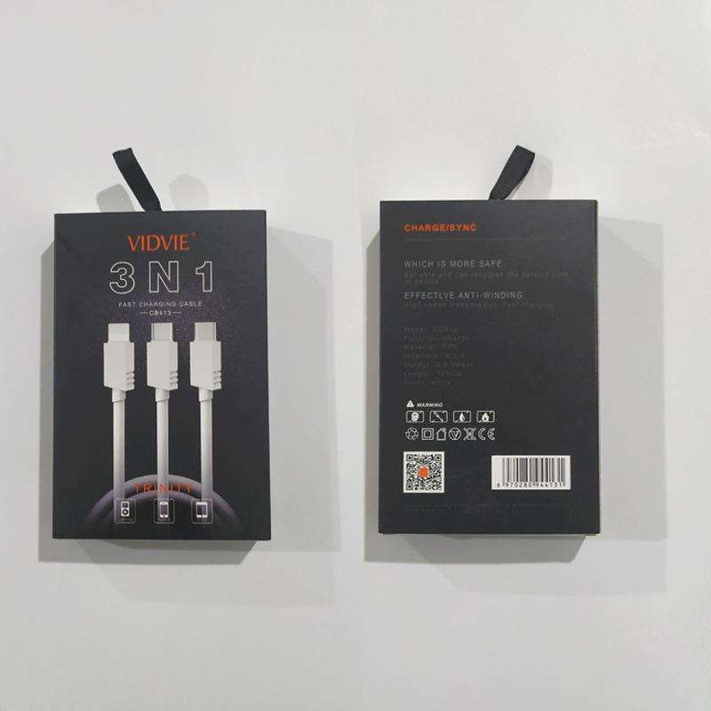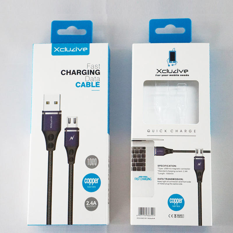 Emballage de câble de données pour accessoires de téléphone portable avec logo personnalisé, câble de charge suspendu 3 en 1, boîte de câble avec trou de suspension