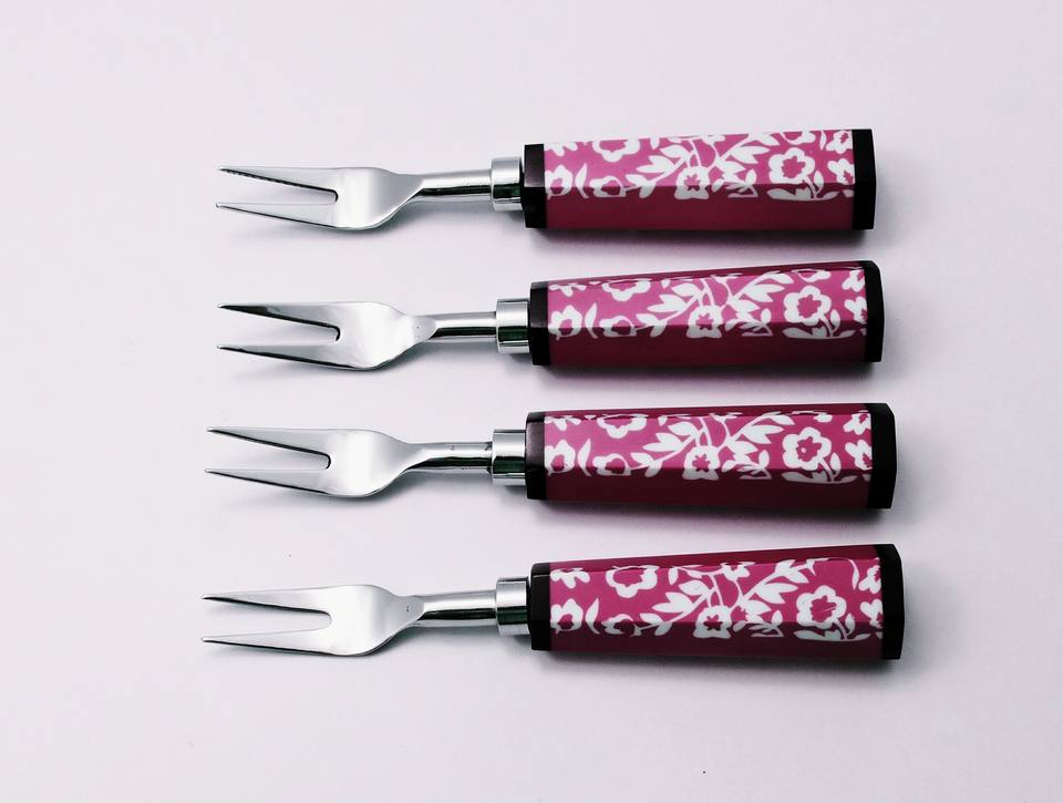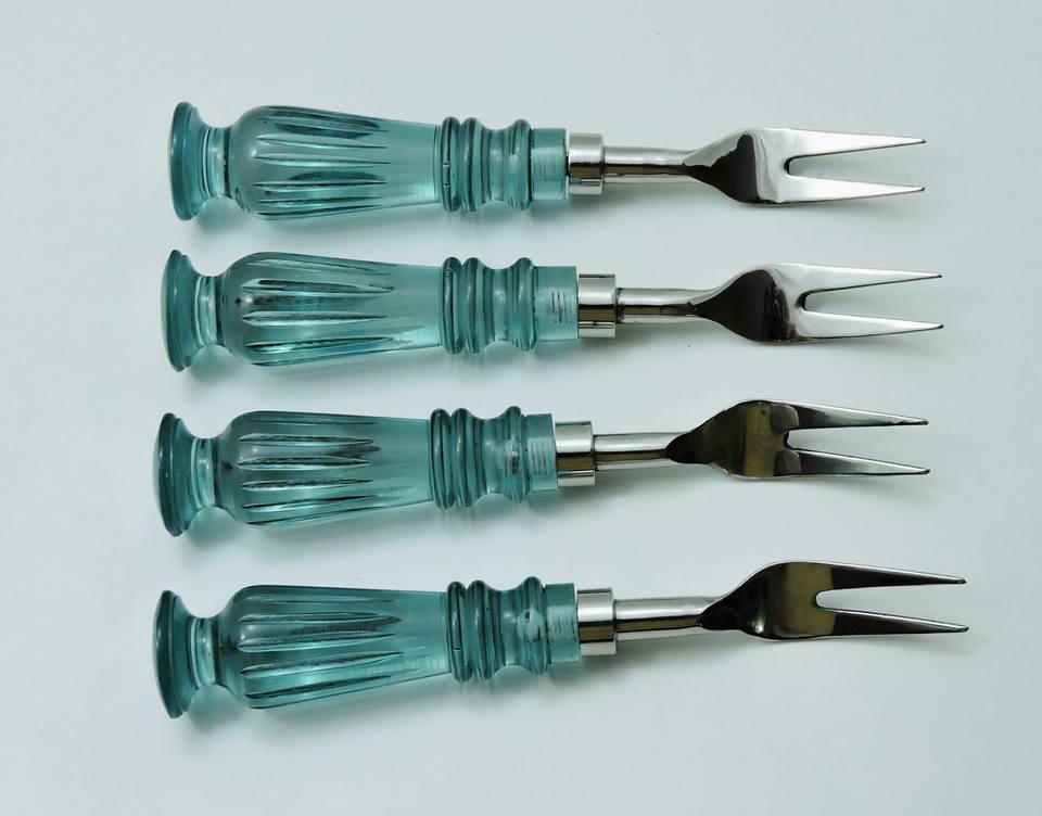 Ensemble de fourchettes durables en acier inoxydable avec poignée en acrylique de couleur verte, logo personnalisé, design moderne et minimaliste, écologique et compatible lave-vaisselle