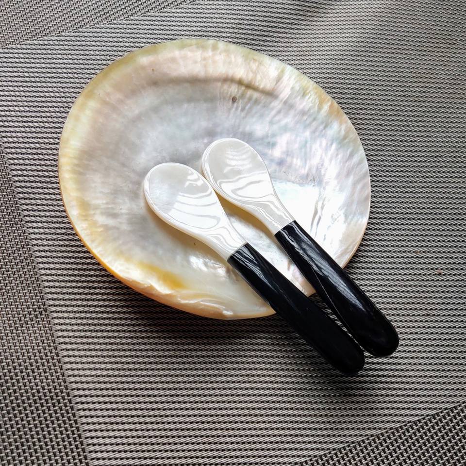 Ensemble d'ustensiles de cuisine avec Logo personnalisé, cuillère en nacre avec poignée en corne noire, Caviar, ensembles d'ustensiles de cuisine par VITRAPRO