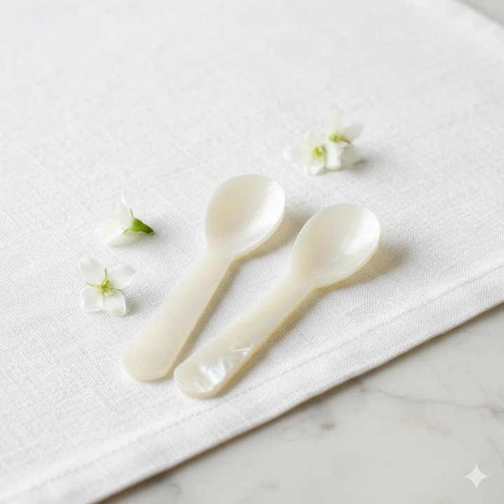 Cuillères en nacre personnalisées avec logo, vente en gros, cuillères en coquille de mer naturelle pour le service de cuisine gastronomique