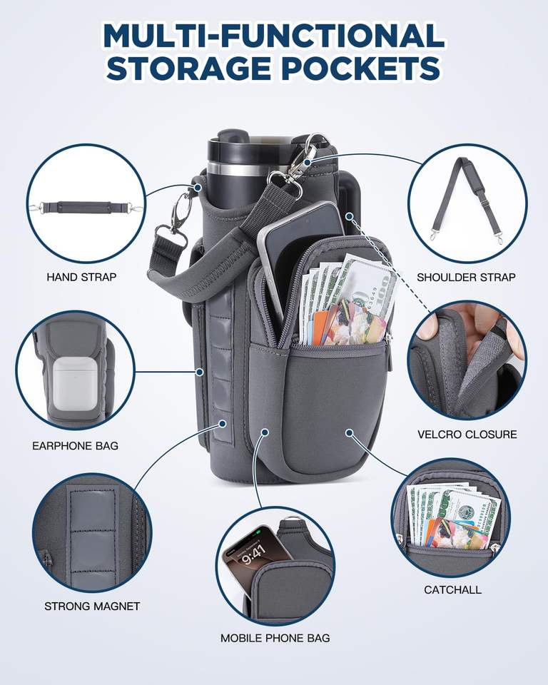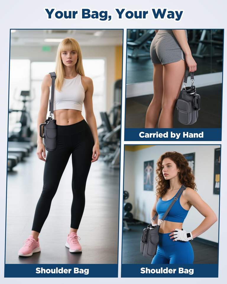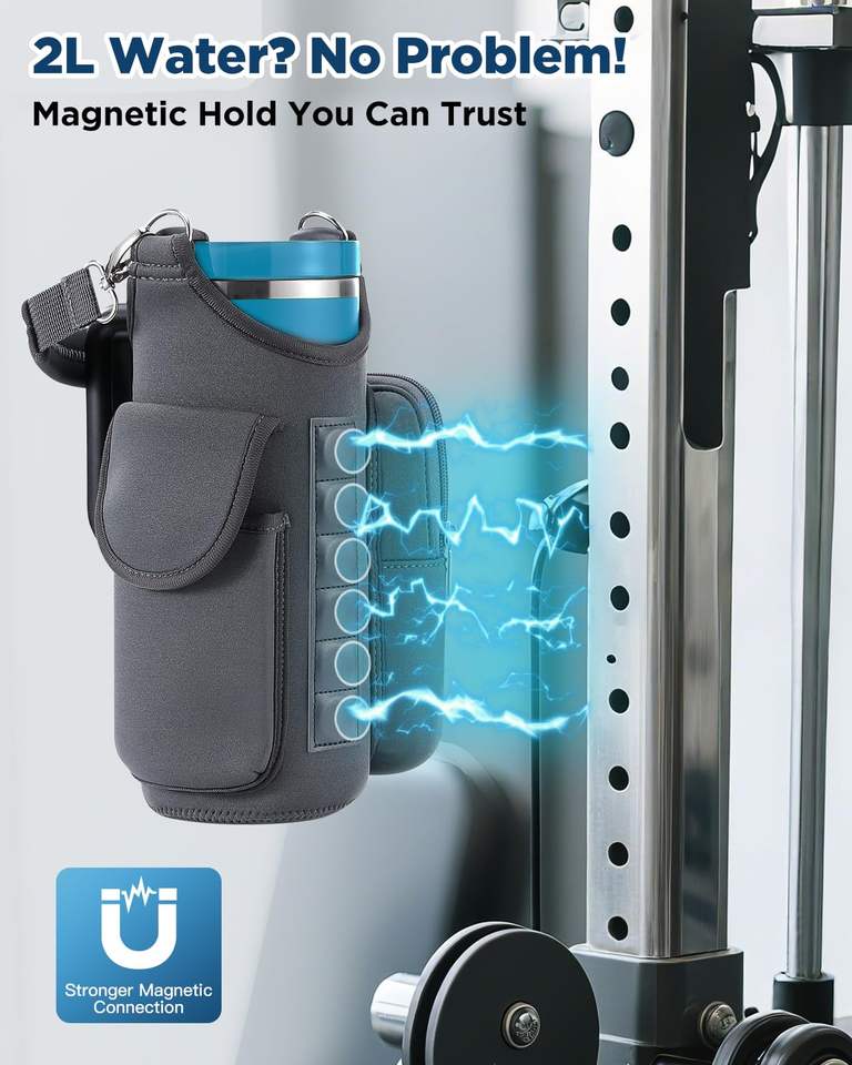 Sac de transport pour bouteille d'eau de sport, de fitness et de gym, avec logo personnalisé, multifonctionnel, magnétique, avec poches pour téléphone, bandoulière