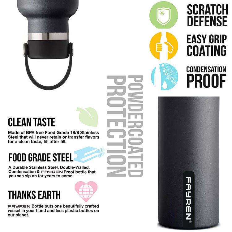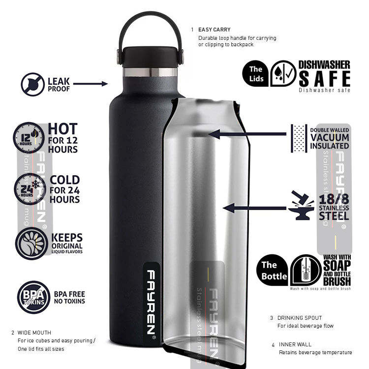 Logo personnalisé plusieurs tailles et couleurs bouteille d'eau à bouche Standard en acier inoxydable isolée sous vide avec couvercle flexible