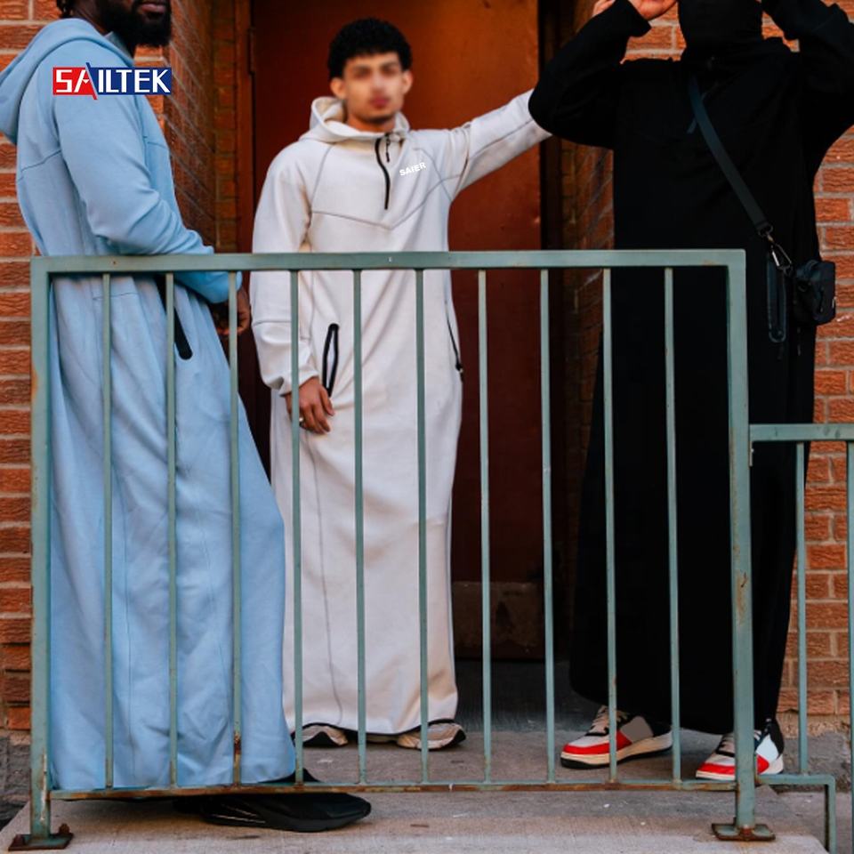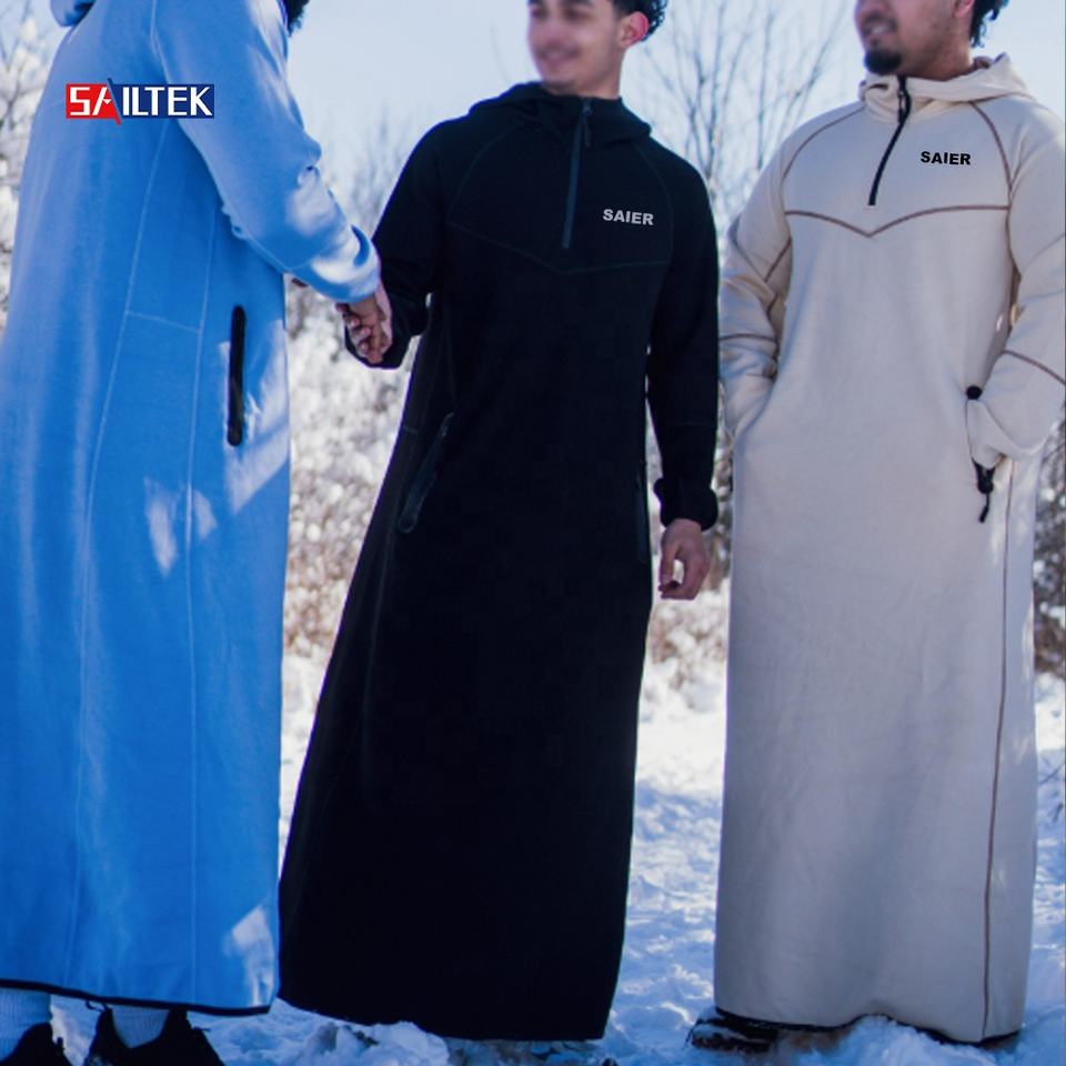Sweat-shirt à capuche long à fermeture éclair sur le côté, logo personnalisé, musulman, extérieur, streetwear, haute qualité, molleton lourd, sweat-shirt à capuche pour hommes
