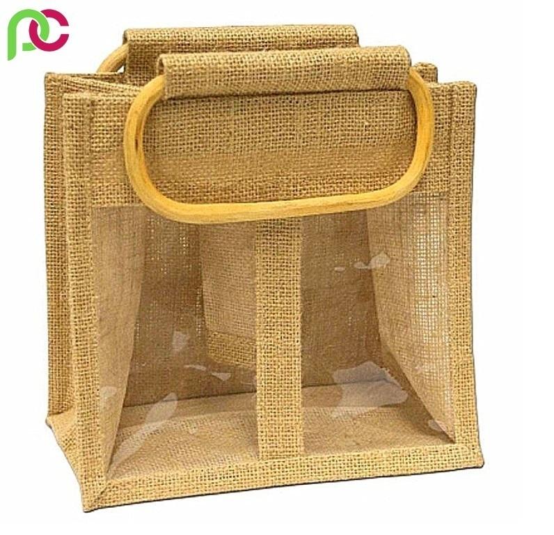 Jute Wine Bag-plastic window