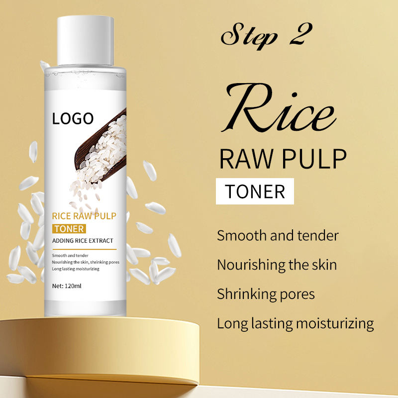Crème hydratante pour le visage à logo personnalisé, sérum éclaircissant, soin de la peau au riz, ensemble de soins de la peau