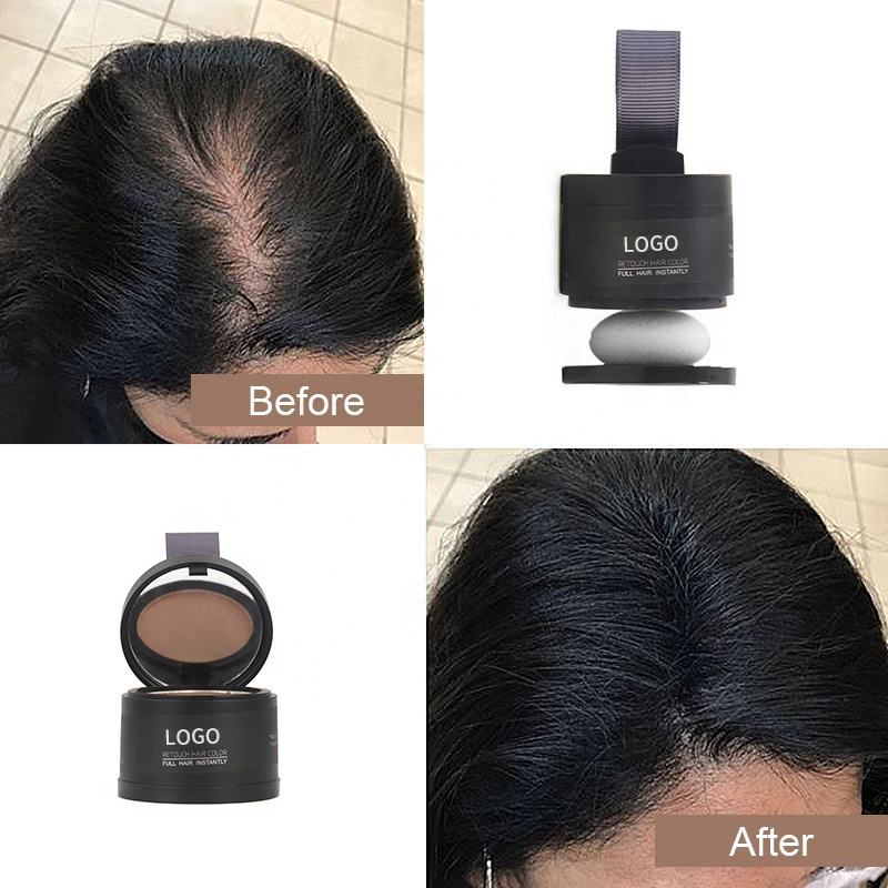 Poudre capillaire naturelle et biologique anti-chute avec logo personnalisé, produit de soin capillaire réparateur, poudre pour la ligne des cheveux avec une houppette