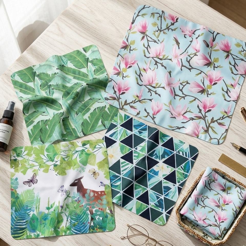 Chiffon de nettoyage en microfibre avec logo personnalisé, imprimé forêt naturelle, pour écran de téléphone, verre, lentilles, chiffon de nettoyage doux