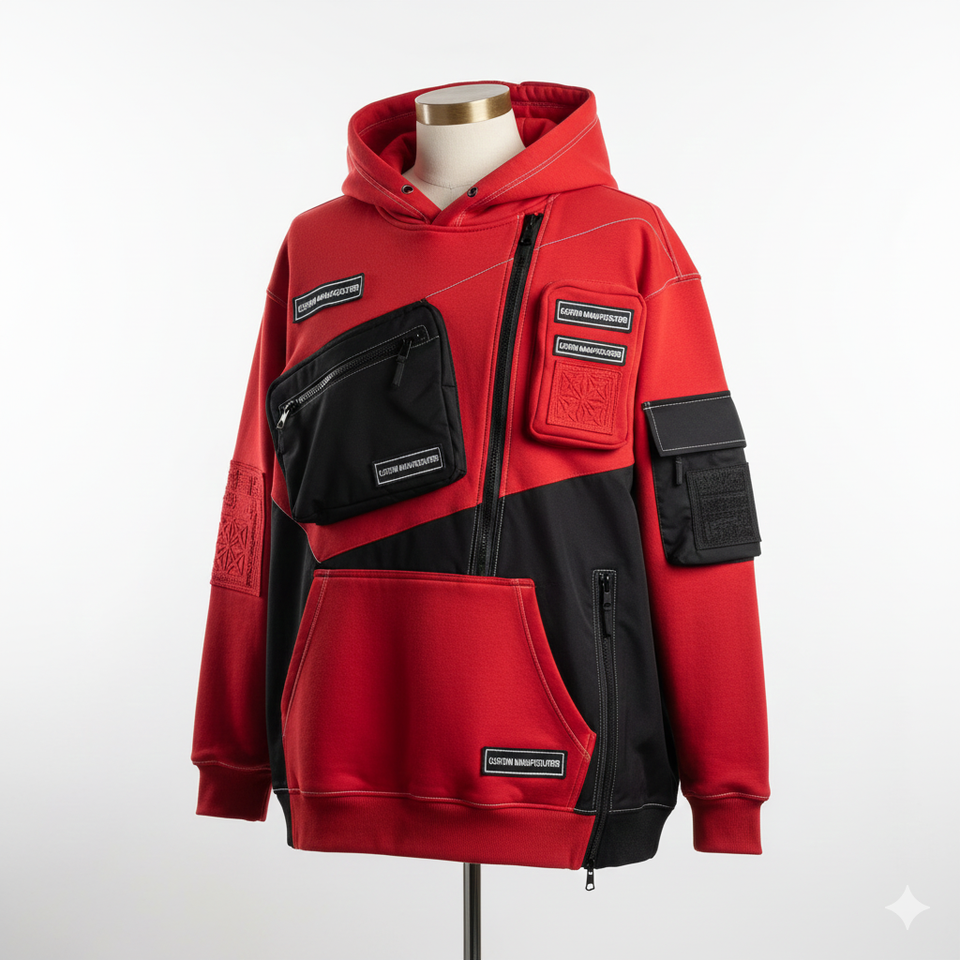 Custom Logo New Design Multi Pocket Quarter Zip Pullover Hoodie Fashionable Sports Sweatshirt With Cargo Pockets