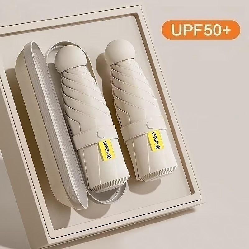 Logo Personnalisé Nouveau Design Oem Promotionnel Parasol Capsule de Poche Portable Protection Uv Petit Parapluie Beige 8 Côtes Mini 5 Pliant