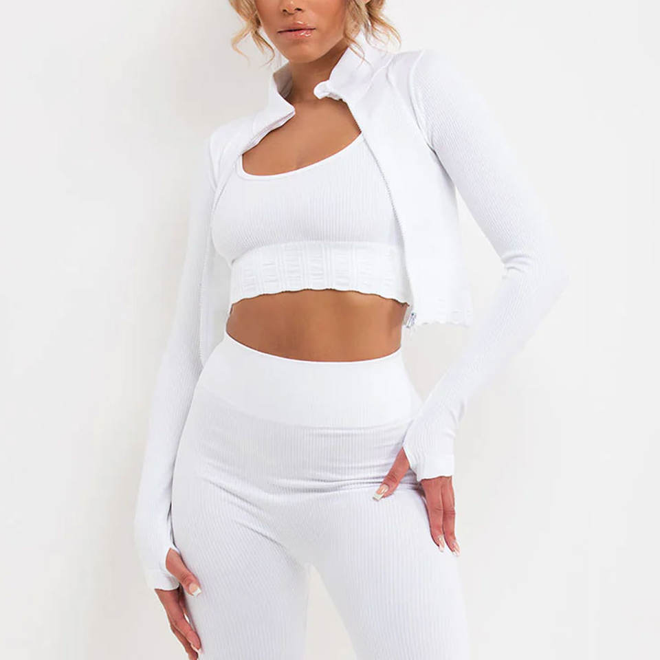Ensemble de yoga 3 pièces sans couture respirant et à séchage rapide avec logo personnalisé pour femmes - Léger pour l'entraînement et le fitness