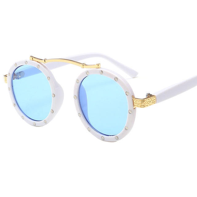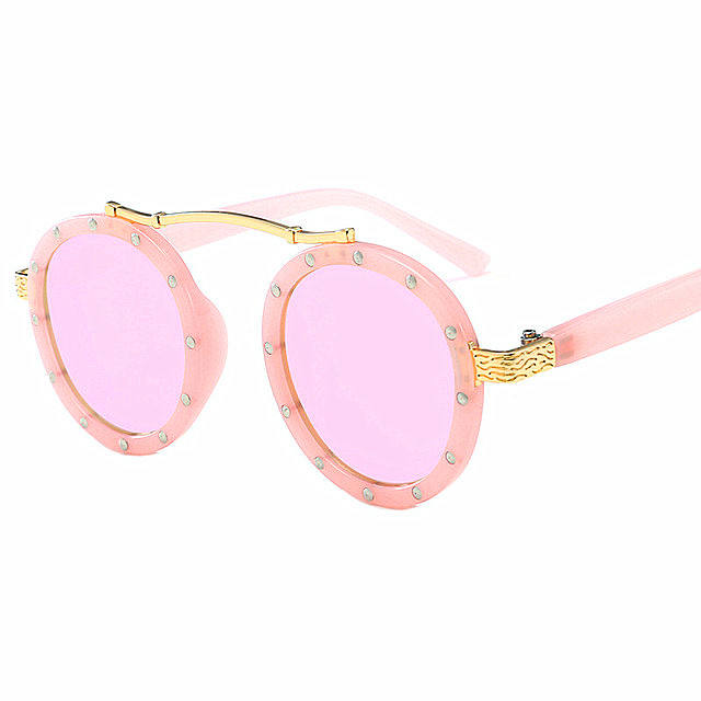Lunettes de soleil pour enfants, nouvelle mode, vente chaude, monture rose petite, avec rivets, protection UV400, rondes, personnalisables avec logo