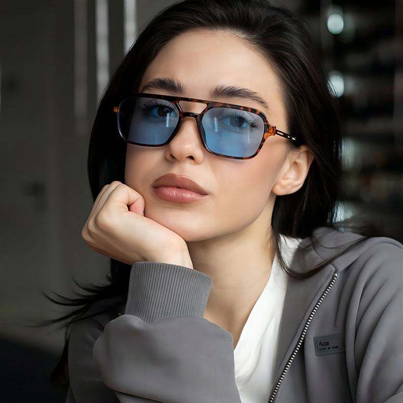 Lunettes de soleil rétro tendance avec logo personnalisé, monture carrée pilote à double pont, motif léopard bleu, pour hommes et femmes