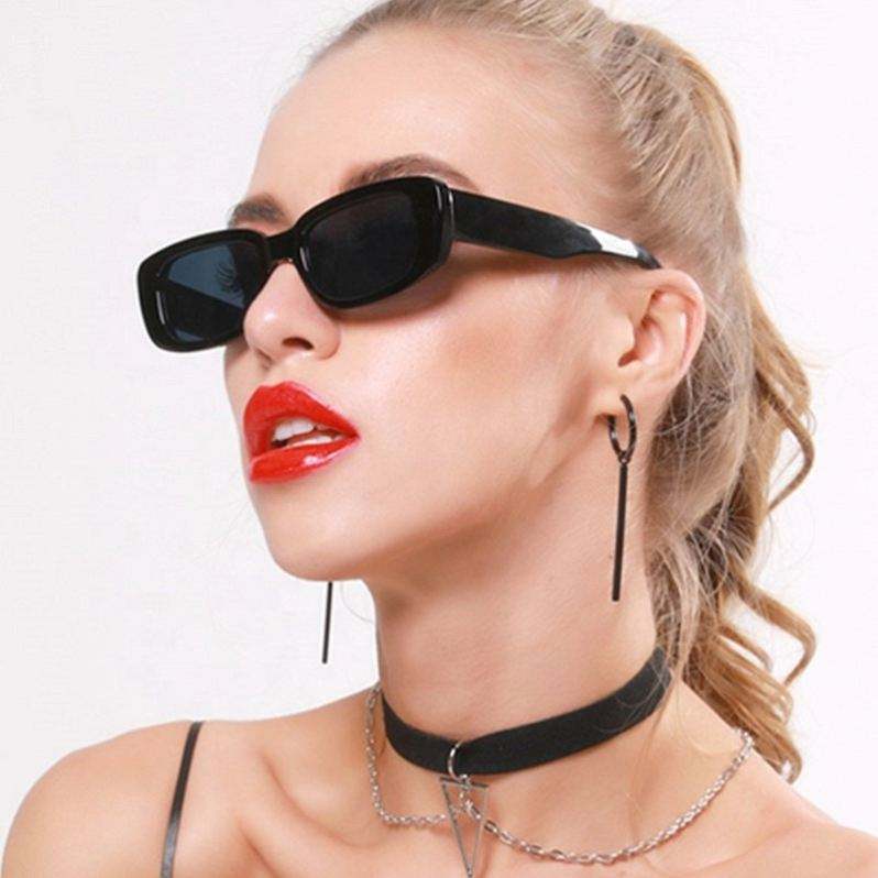Lunettes de soleil carrées vintage personnalisées avec logo, noires et roses, pour femmes, protection UV400, petites lunettes rectangulaires pour femmes