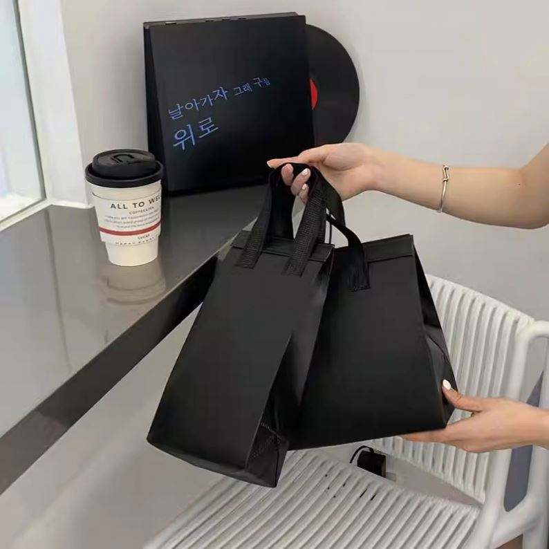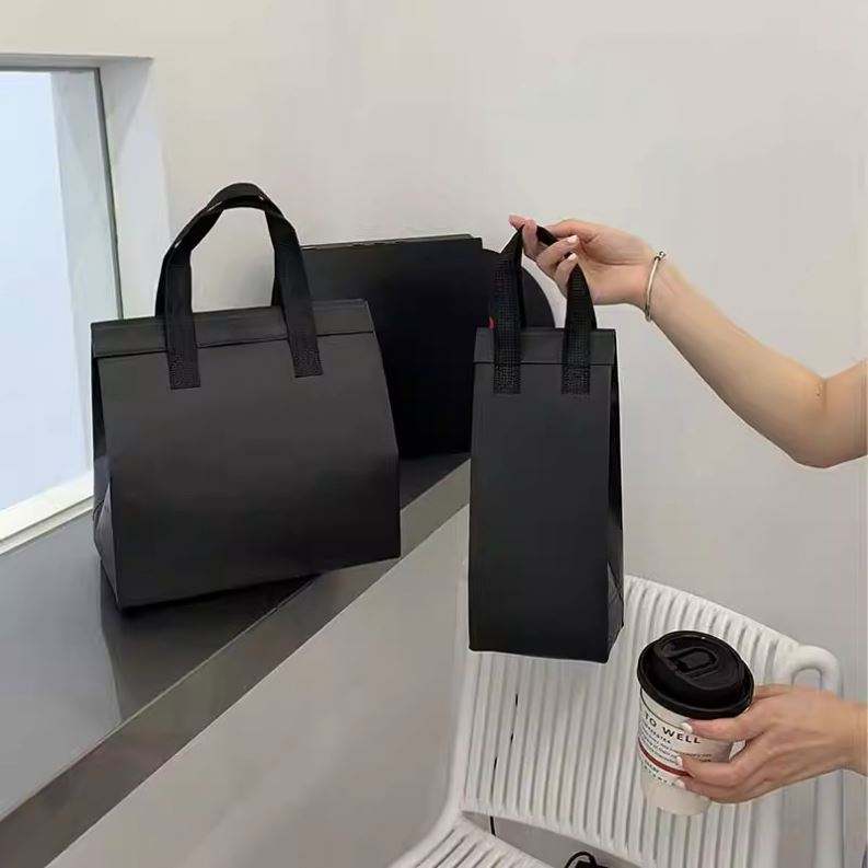 Sac fourre-tout publicitaire personnalisé en non-tissé pour la restauration rapide, sacs de pique-nique laminés à livraison rapide