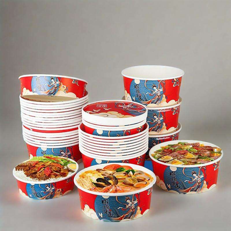 Bol en papier pour nouilles avec logo personnalisé, vaisselle jetable pour la restauration rapide, gobelet en papier pour nouilles, bol en papier pour salade