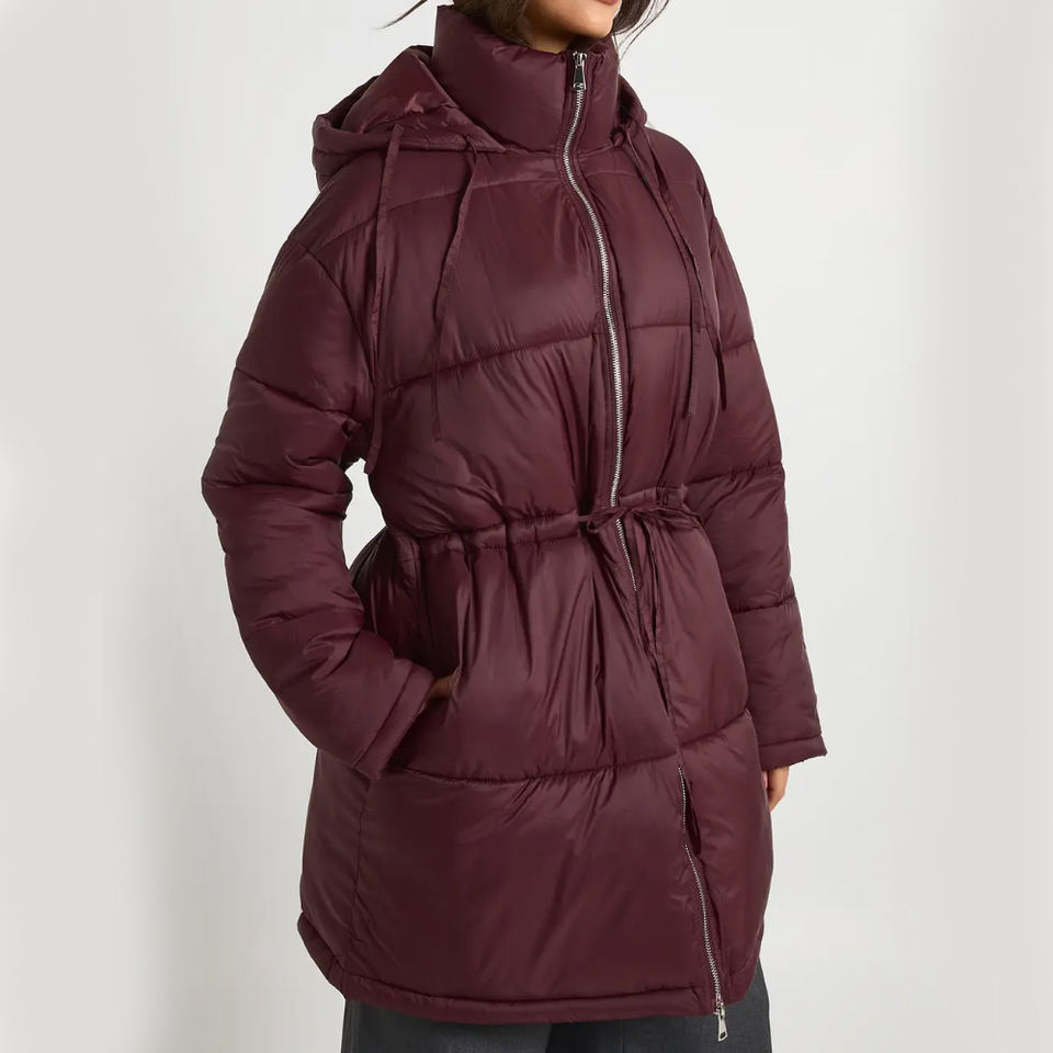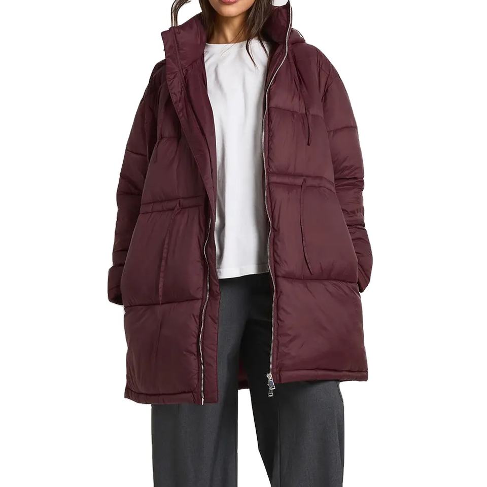 Veste matelassée pour femme en tissu nylon avec logo personnalisé, OEM, haute qualité, capuche, chaude, hiver, grande taille, fermeture éclair intégrale, veste gonflée d'extérieur