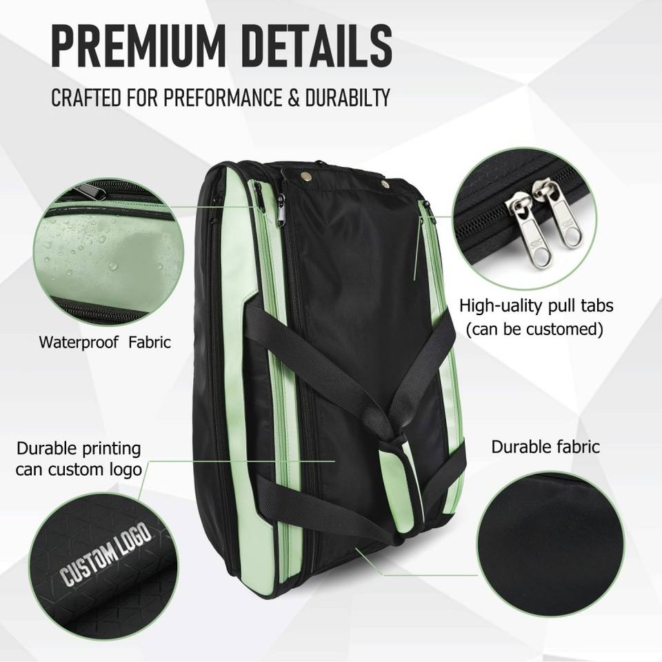 Sac de sport portable en nylon avec logo personnalisé, grande capacité, imperméable, pour raquettes de pickleball, de badminton et de padel, avec poche pour chaussures