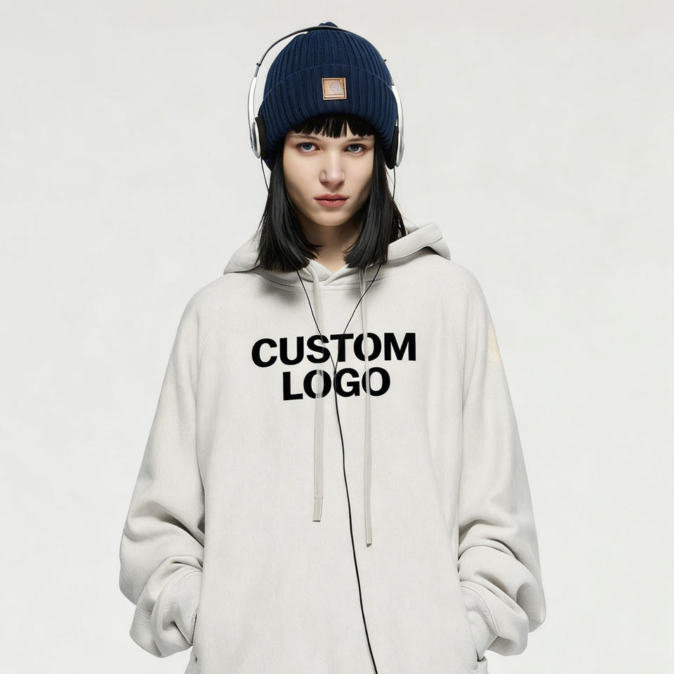 Sweat à capuche coupe ample unisexe personnalisé avec logo ODM, en polyester/coton, épaules tombantes, épaisseur 450 g/m², broderie, coupe-vent