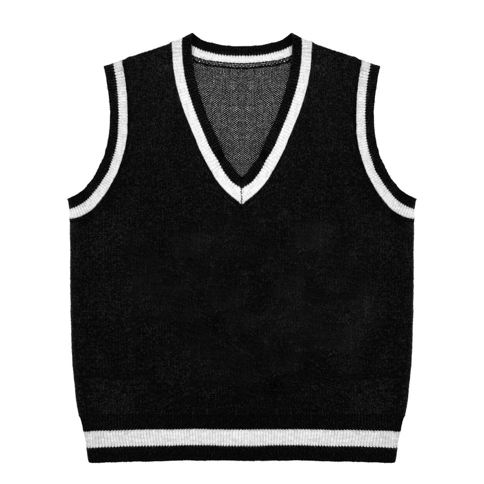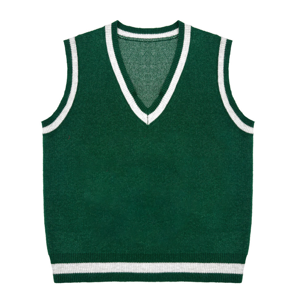 Pull sans manches en tricot jacquard avec logo personnalisé OEM, lettres, uniforme scolaire, tricot, col en V, pull sans manches en tricot pour homme